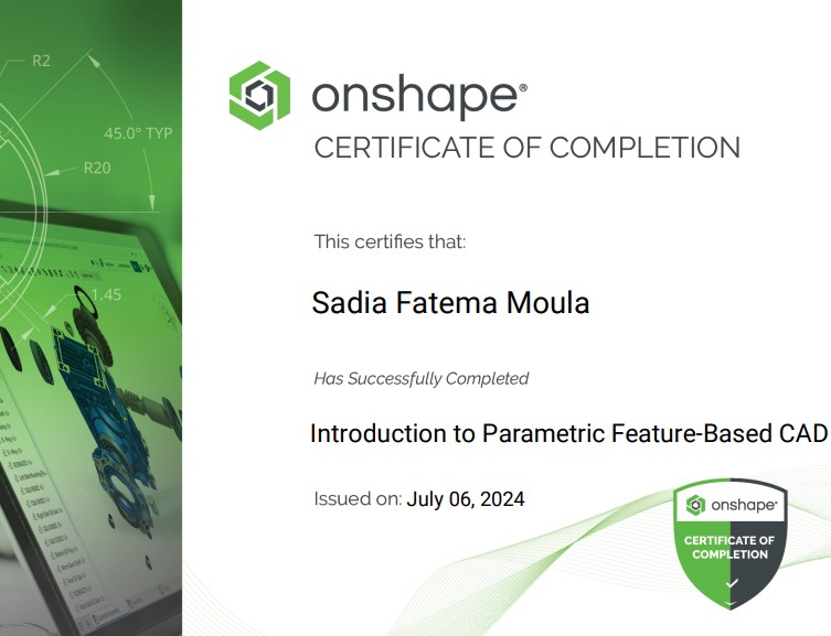 Completed a hands-on introduction to parametric and feature-based 3D computer-aided design (CAD), gaining practical experience in modeling principles, constraints, and part assembly techniques used in modern engineering workflows.