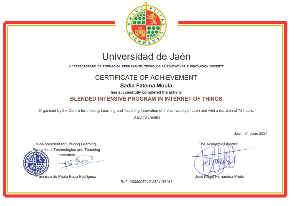 Blended Intensive Program in IoT – University of Jaén, Spain